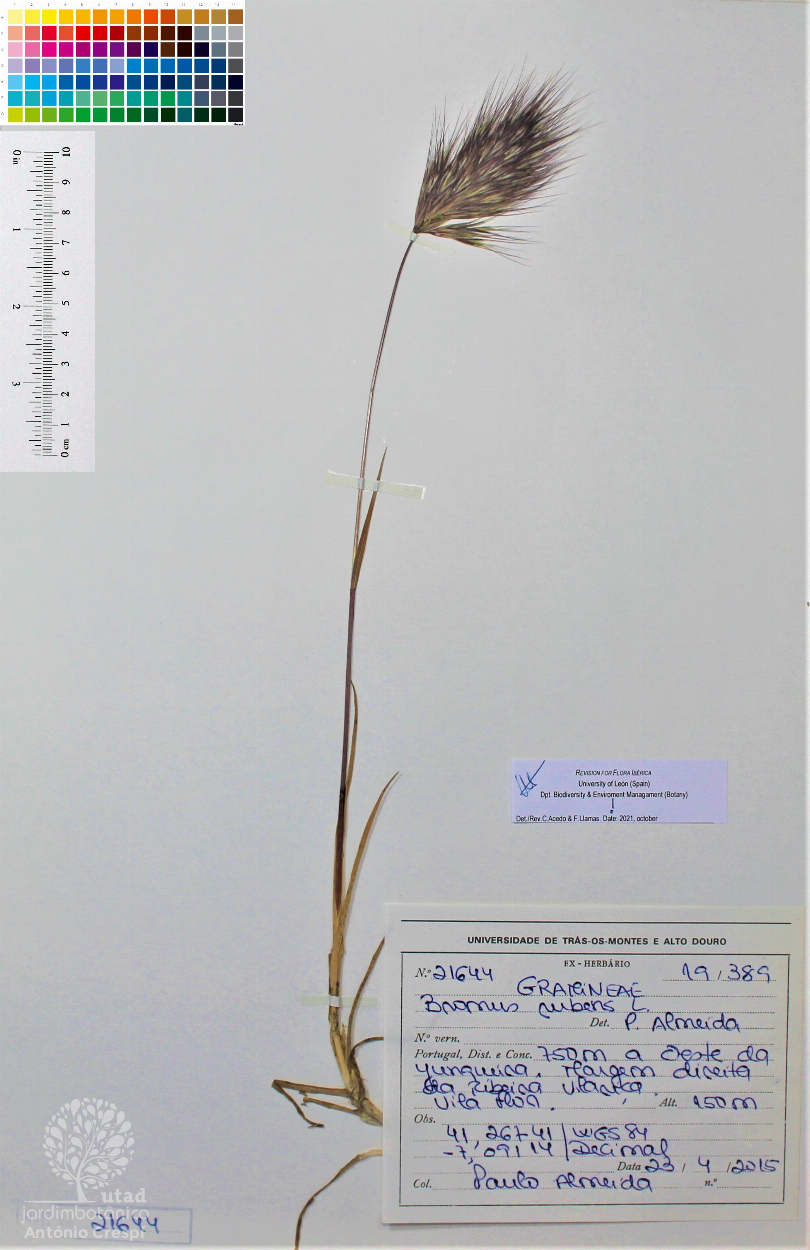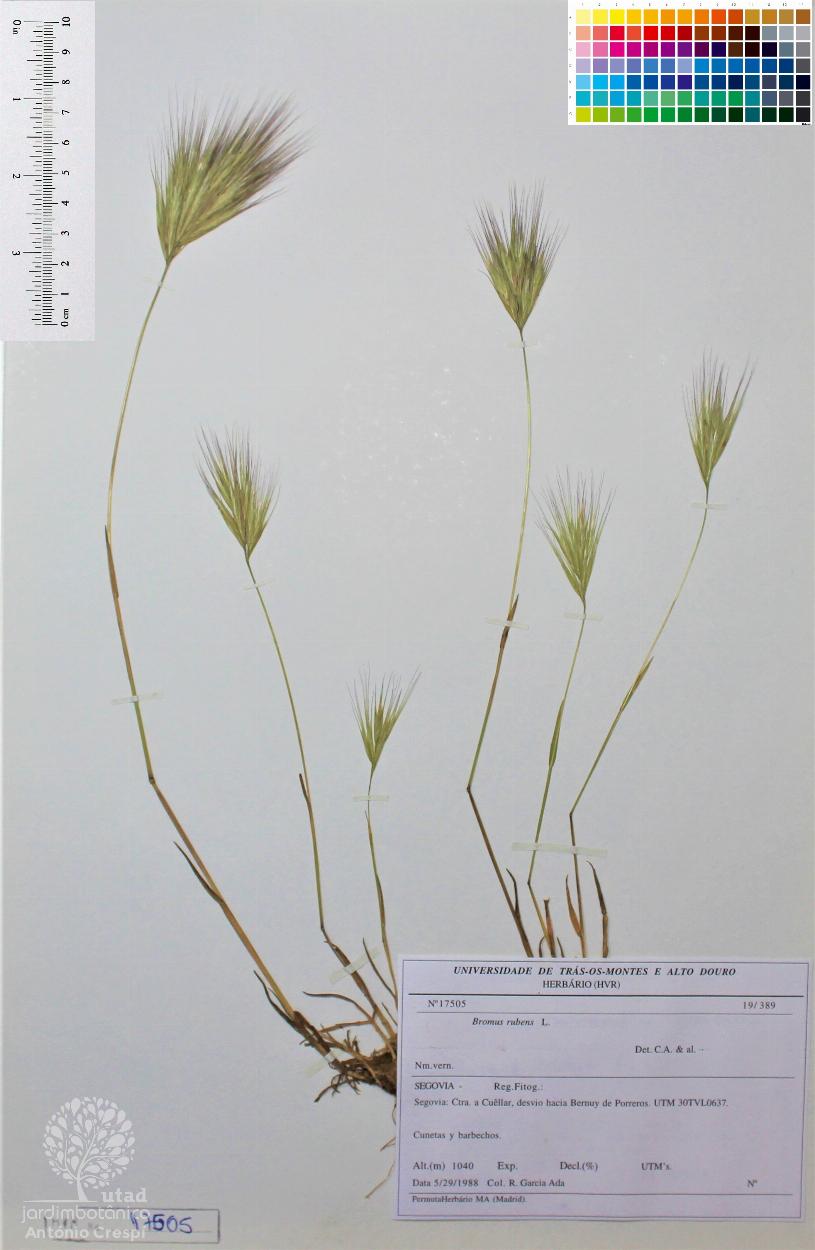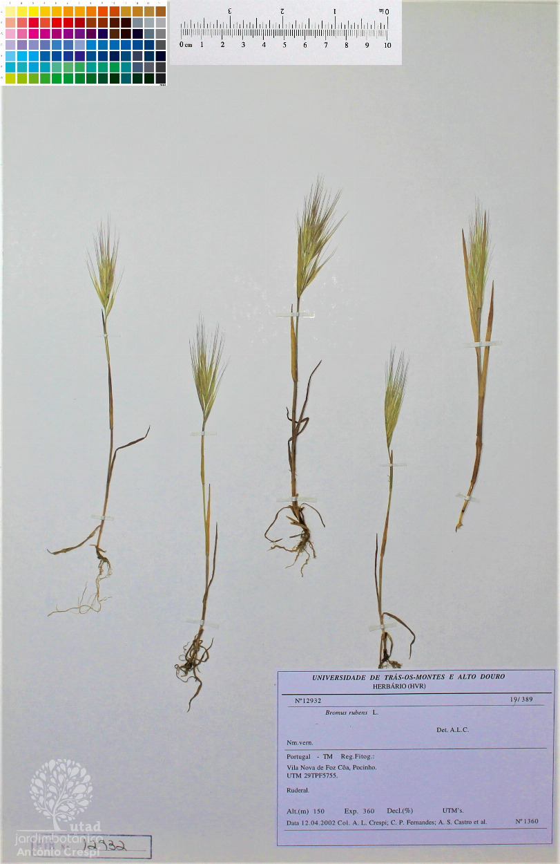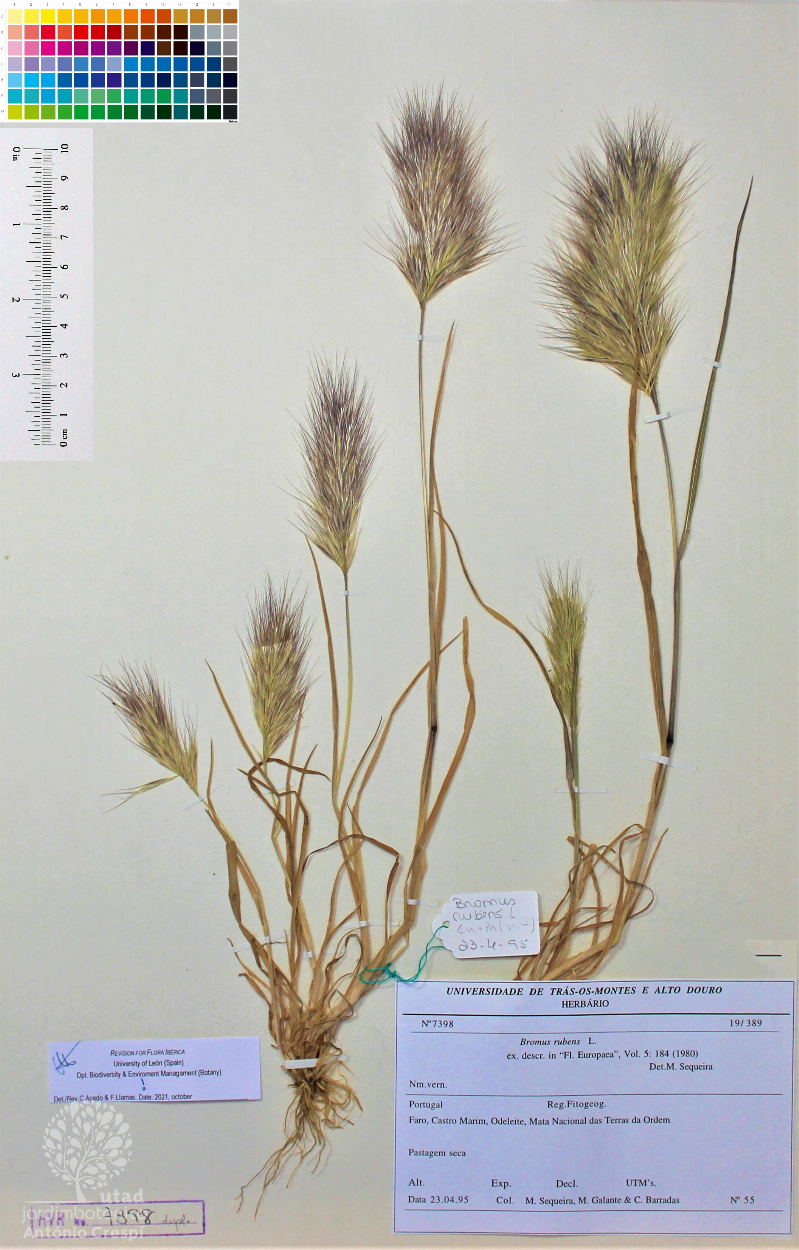 Todas as fotografias do Jardim Botânico UTAD são publicadas sob uma licença CC BY-NC 4.0. Pode utiliza-las livremente, para fins não-comerciais, desde que credite o Jardim Botânico e o autor específico da fotografia caso exista. Para uso comercial ou utilização de alguma fotografia sem marca d'água queira entrar em contacto. Pode ver aqui todas as imagens da espécie Bromus rubens.