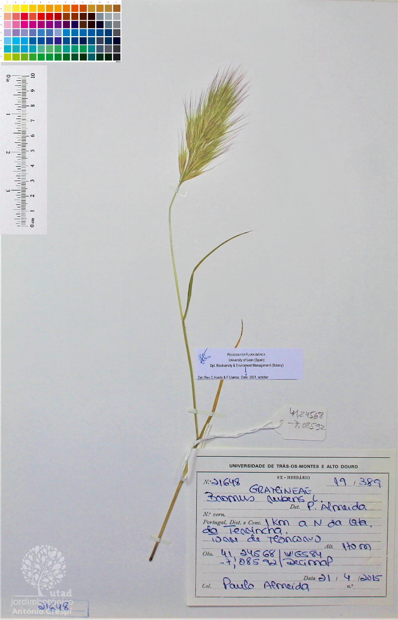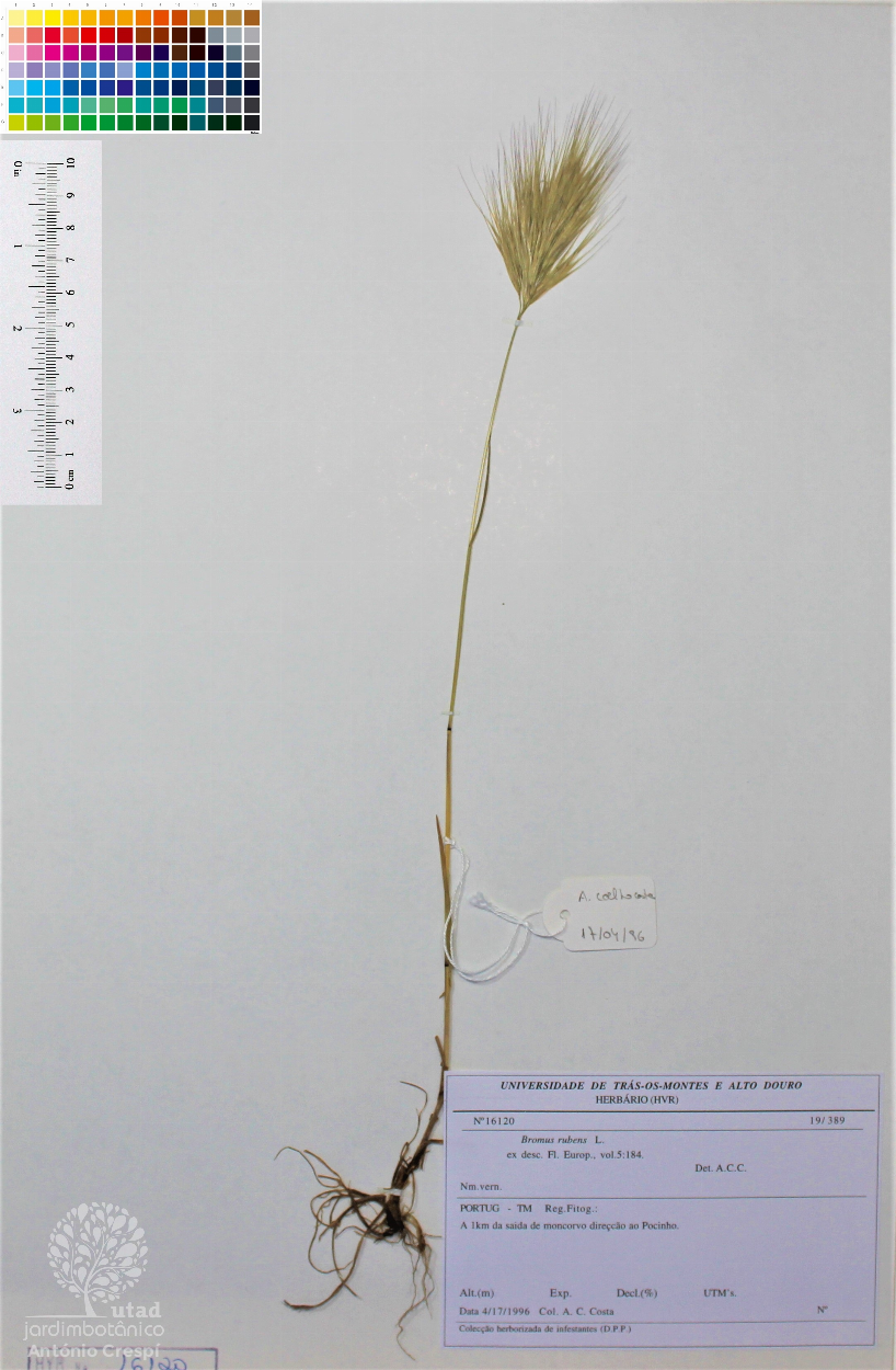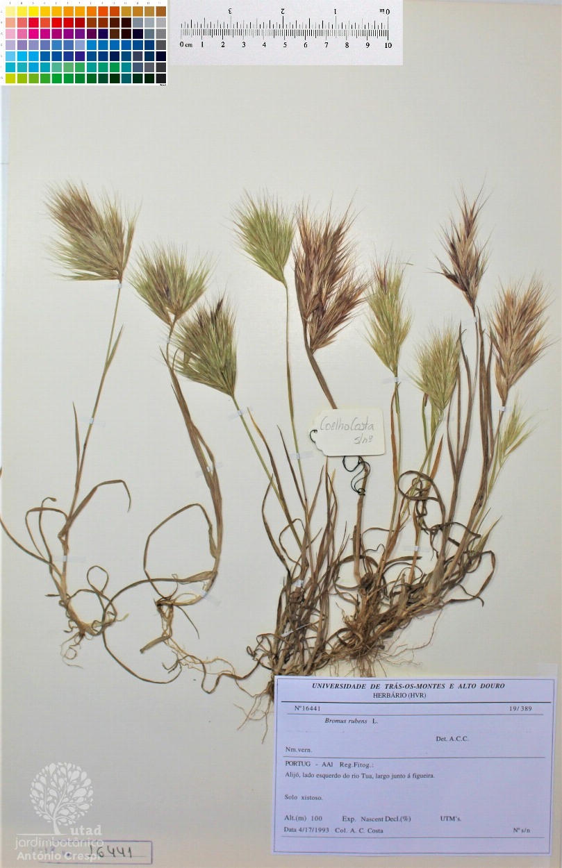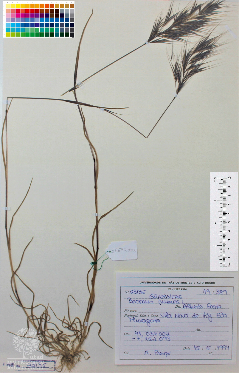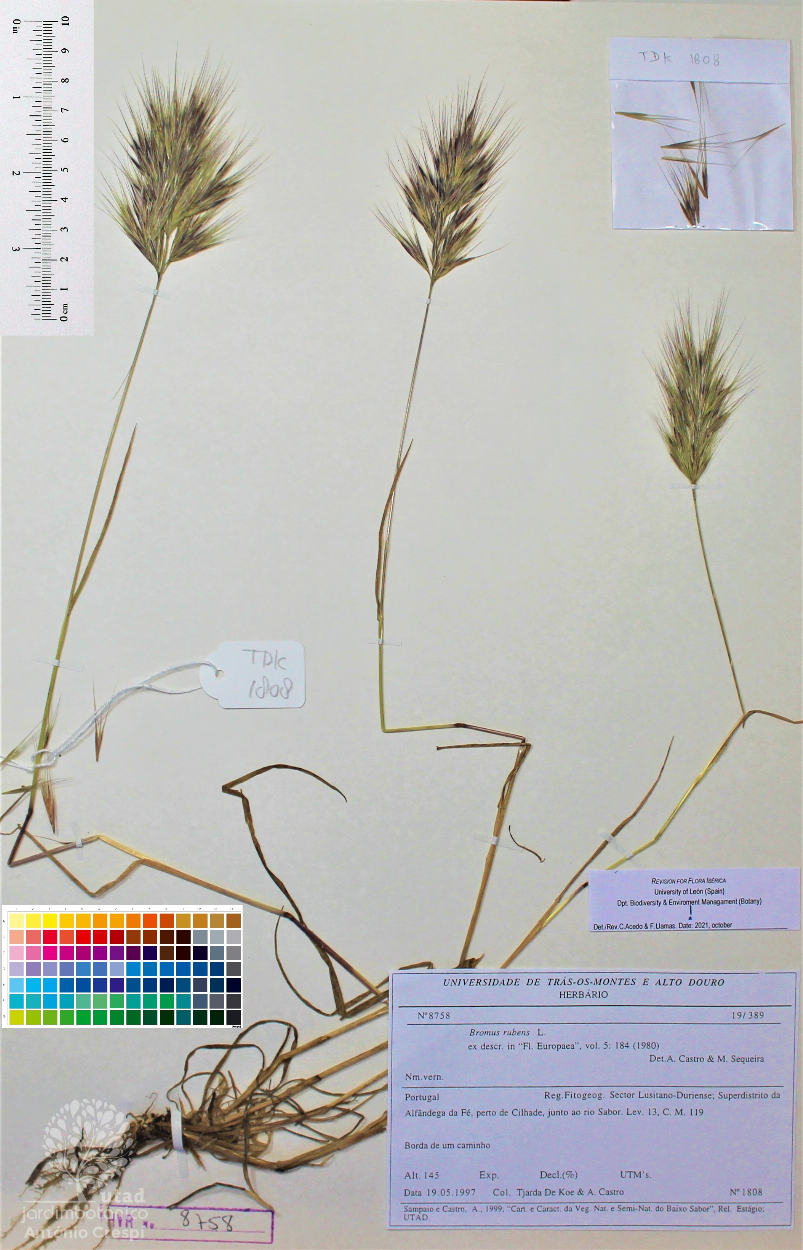 Todas as fotografias do Jardim Botânico UTAD são publicadas sob uma licença CC BY-NC 4.0. Pode utiliza-las livremente, para fins não-comerciais, desde que credite o Jardim Botânico e o autor específico da fotografia caso exista. Para uso comercial ou utilização de alguma fotografia sem marca d'água queira entrar em contacto. Pode ver aqui todas as imagens da espécie Bromus rubens.