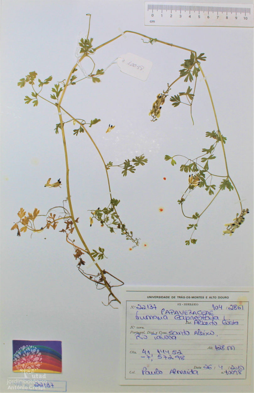 Todas as fotografias do Jardim Botânico UTAD são publicadas sob uma licença CC BY-NC 4.0. Pode utiliza-las livremente, para fins não-comerciais, desde que credite o Jardim Botânico e o autor específico da fotografia caso exista. Para uso comercial ou utilização de alguma fotografia sem marca d'água queira entrar em contacto. Pode ver aqui todas as imagens da espécie Fumaria capreolata.