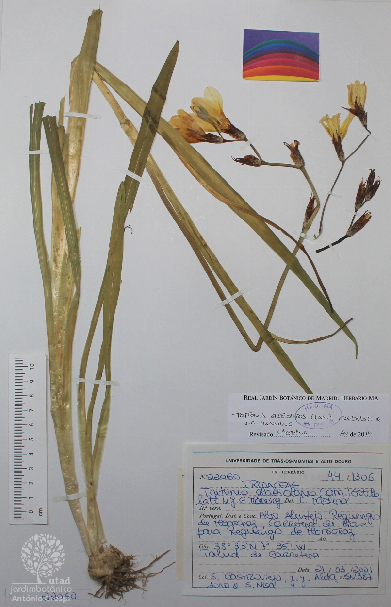 Todas as fotografias do Jardim Botânico UTAD são publicadas sob uma licença CC BY-NC 4.0. Pode utiliza-las livremente, para fins não-comerciais, desde que credite o Jardim Botânico e o autor específico da fotografia caso exista. Para uso comercial ou utilização de alguma fotografia sem marca d'água queira entrar em contacto. Pode ver aqui todas as imagens da espécie Tritonia gladiolaris.